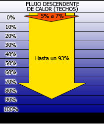 El aislamiento Reflectex ® tiene un coeficiente de reflexión del 97% ante el calor en forma de radiación, por lo que prácticamente detiene el flujo de calor hacia adentro del edificio.